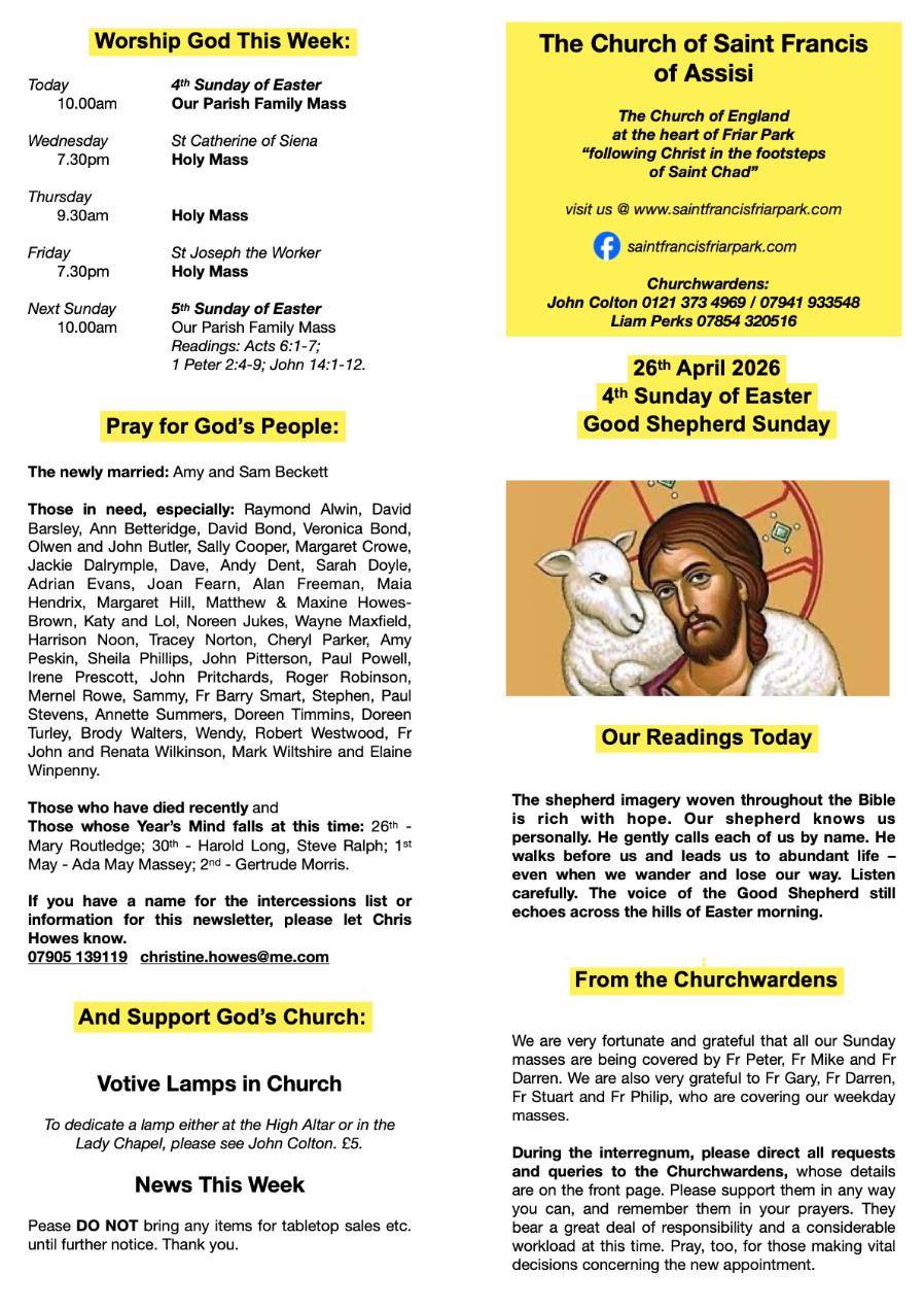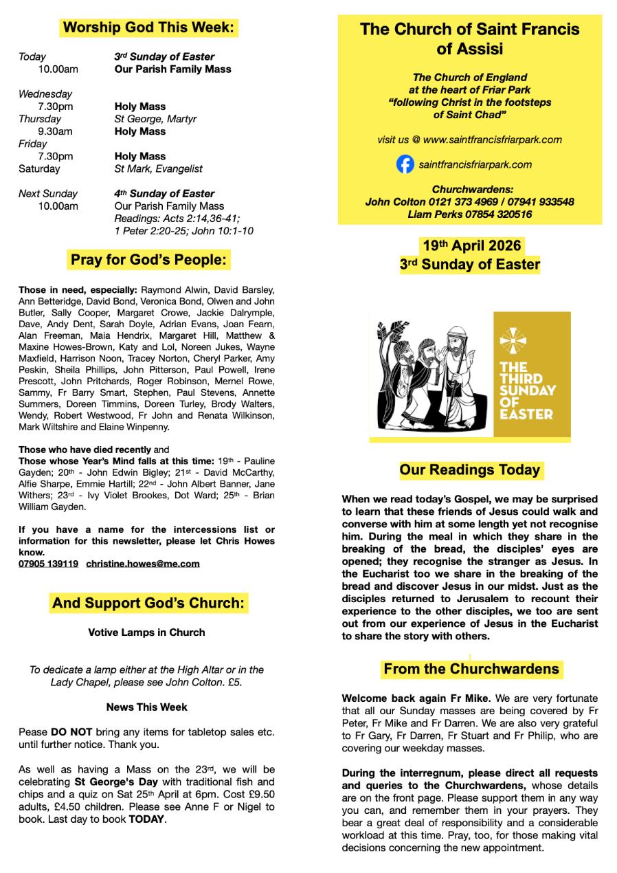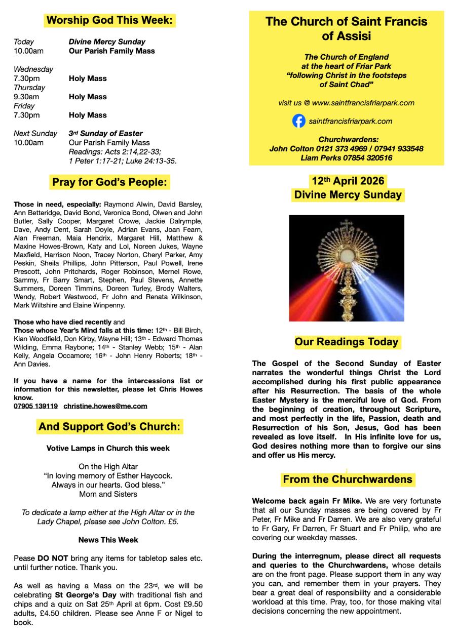 If you cannot attend in person, all our worship is live streamed on our Facebook page: saintfrancisfriarpark.com